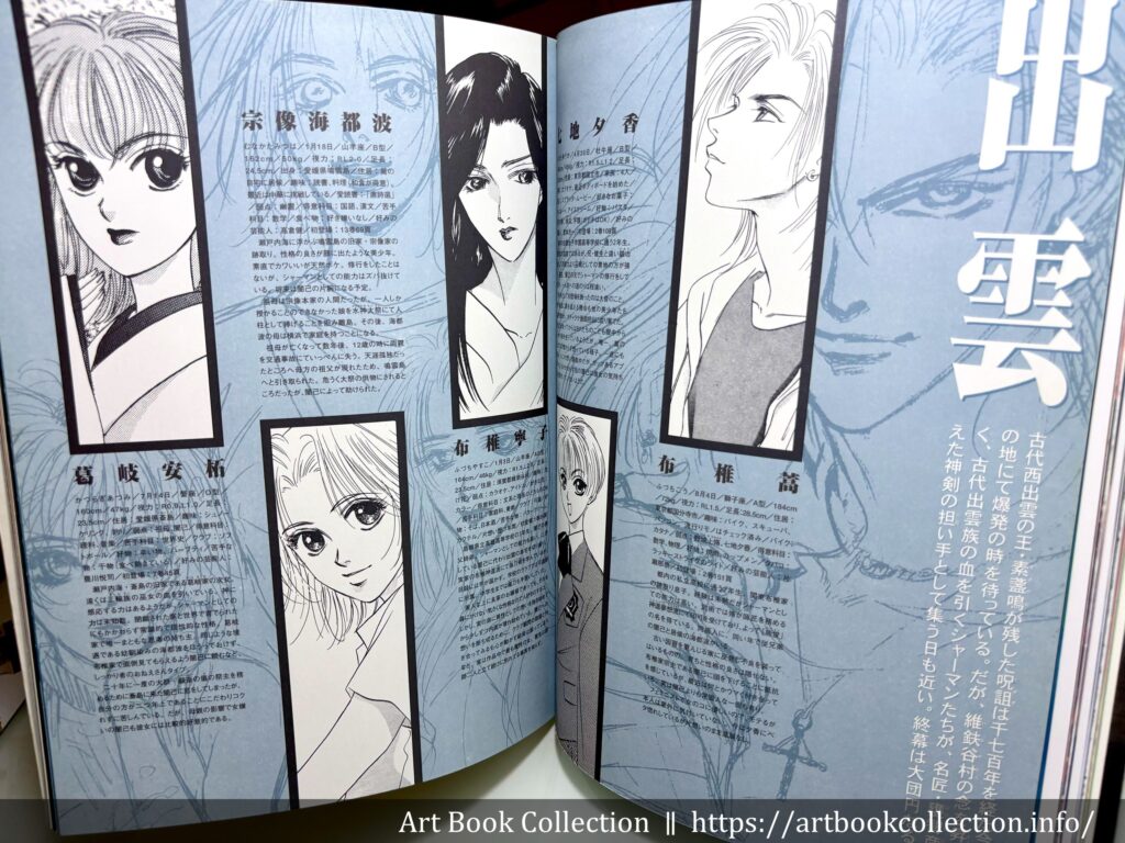 白泉社刊の少女まんが誌『LaLa』で連載中の「八雲立つ」のカラーイラスト59点を収録。コミックス未収録のものからホームページ用カットまで網羅。登場人物紹介・人物辞典・樹なつみ制作秘話など満載。