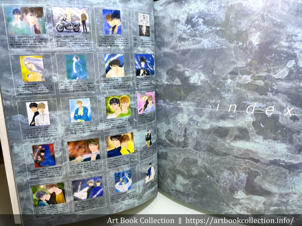 畫集收錄了漫畫連載期間的 59 幅插畫,包含雜誌、單行本封面、特典圖,以及角色介紹與設定、人物關係圖等。