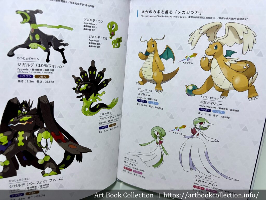 全書 32 頁全彩印刷,設定集收錄的內容包含:城市地圖、插畫、概念藝術、新登場的寶可夢(超級進化)、人物角色、場景等。