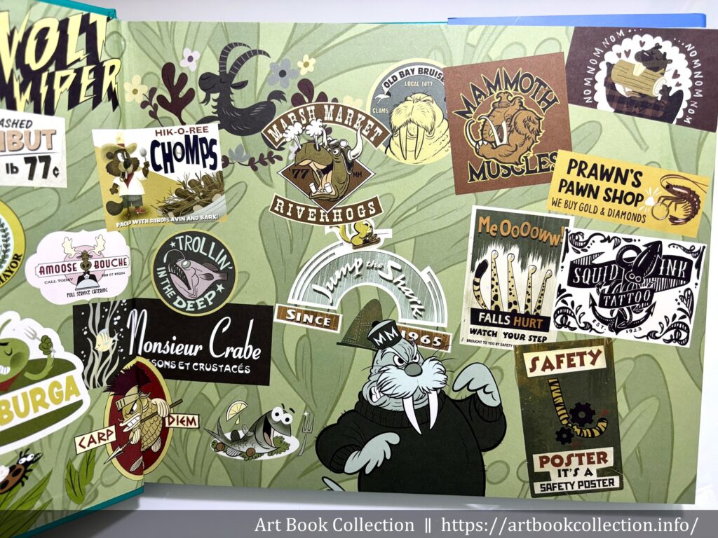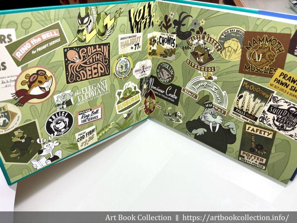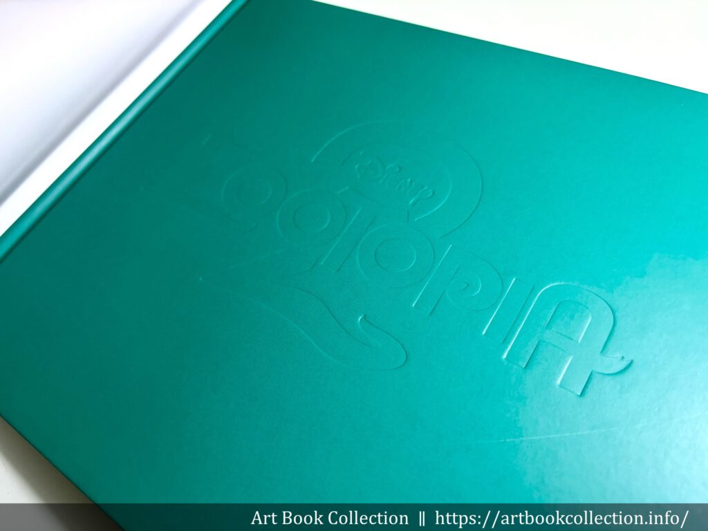 外觀上,設定集採精裝裝訂,寶綠色的裡封殼上有劇名 Zootopia 的打凹字樣。蝴蝶頁延續前一集的設計巧思,呈現動物世界版本的各式知名品牌招牌標語(在電影中也有出現!),相當有趣。